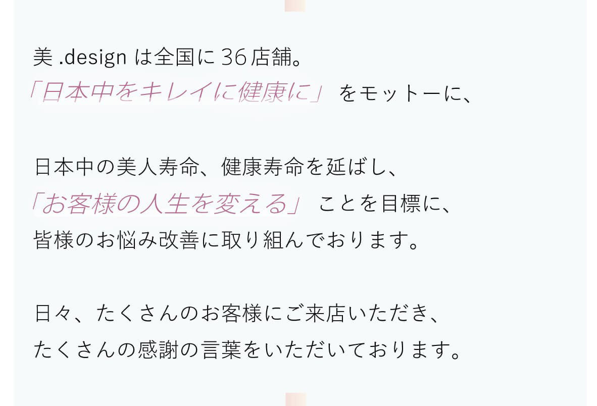 美.designでは、お客様の「美しくなりたい」を全力でサポートさせていただいております。